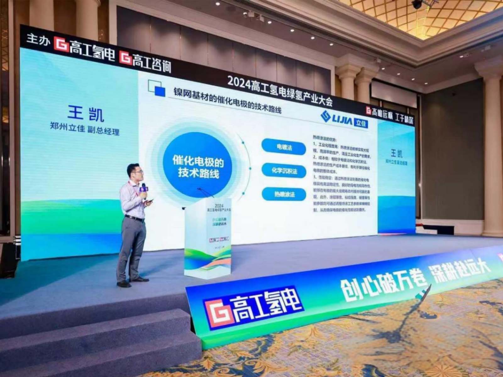 In the technical exchange session of the conference, Zhengzhou Lijia Thermal Spraying Machinery Co., Ltd. stood out and shared a wonderful report on the development trend of intelligent thermal spraying production line for hydrogen catalytic electrodes. As a leader in the field of intelligent spraying production line for hydrogen electrodes in alkaline electrolyzers, Lijia is full of dry information, from the principle of thermal spraying technology, the advantages of intelligent production lines, to the development trend of the industry, a comprehensive and in-depth analysis has attracted the attention of many participants on the scene, and has triggered heated discussions and in-depth exchanges.